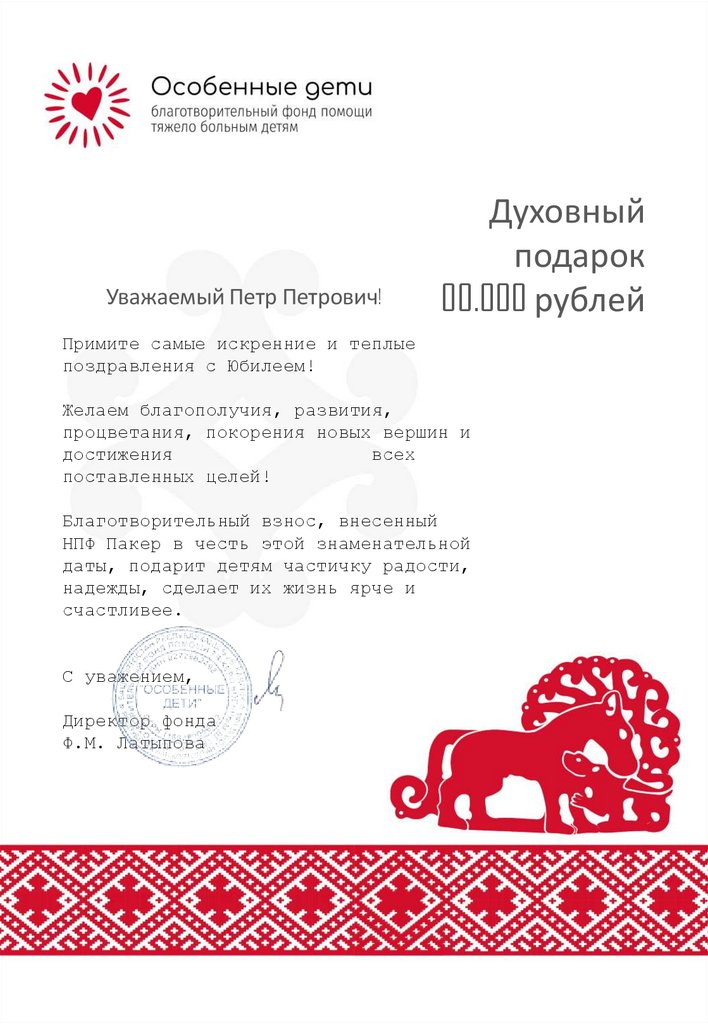 Уважаемый Петр Петрович!Духовный