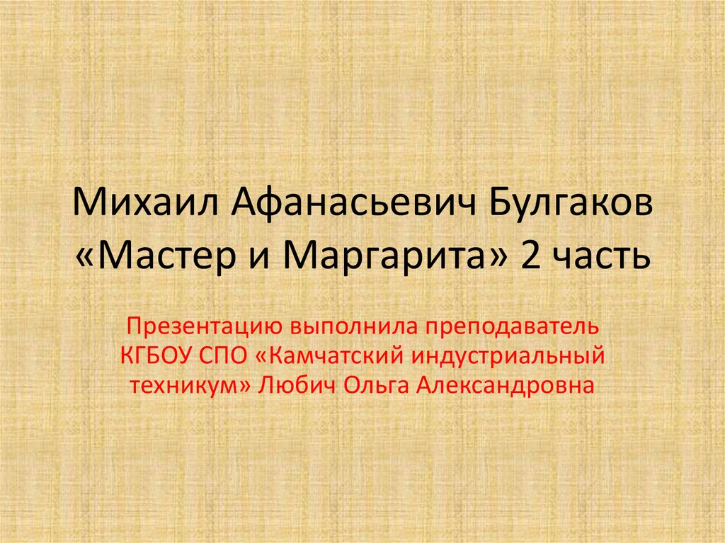 1. Михаил Афанасьевич Булгаков «Мастер и Маргарита» 2 часть