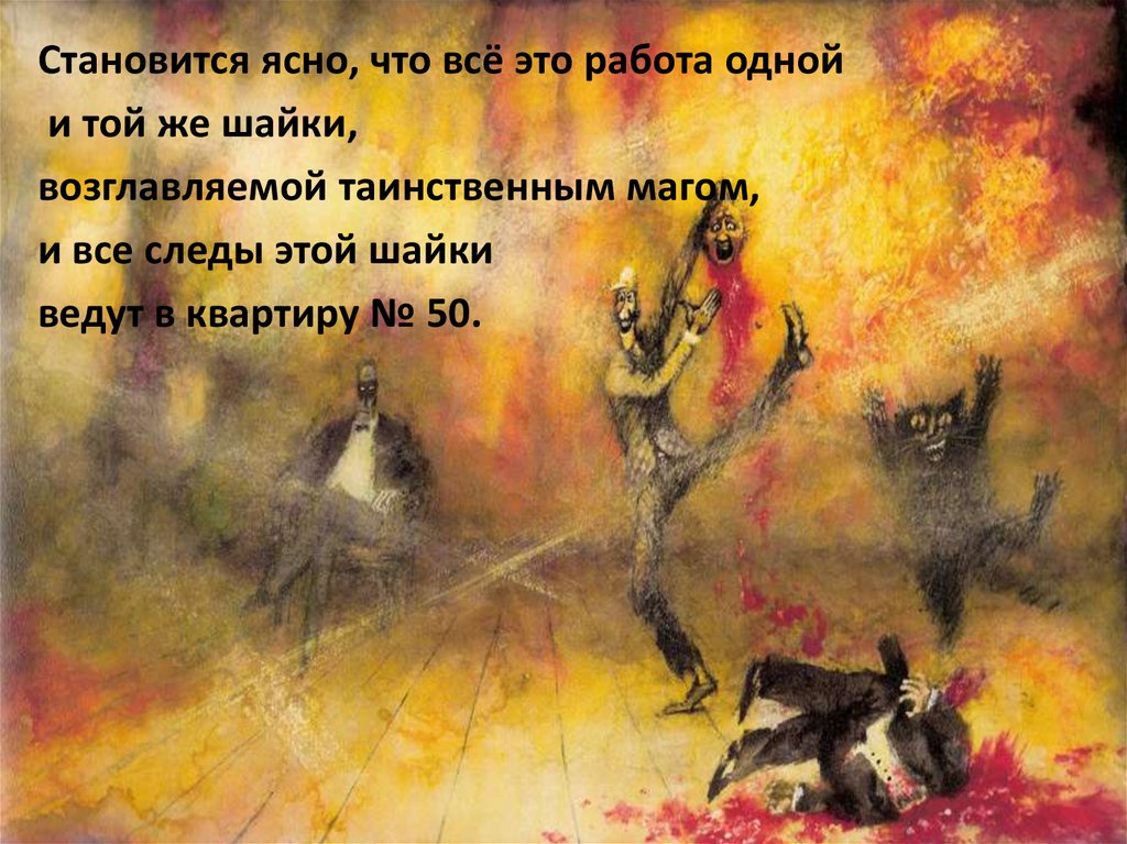 17. Затем Маргариту встречает Азазелло и приводит её в квартиру № 50, где она знакомится с Воландом и остальными членами его свиты.