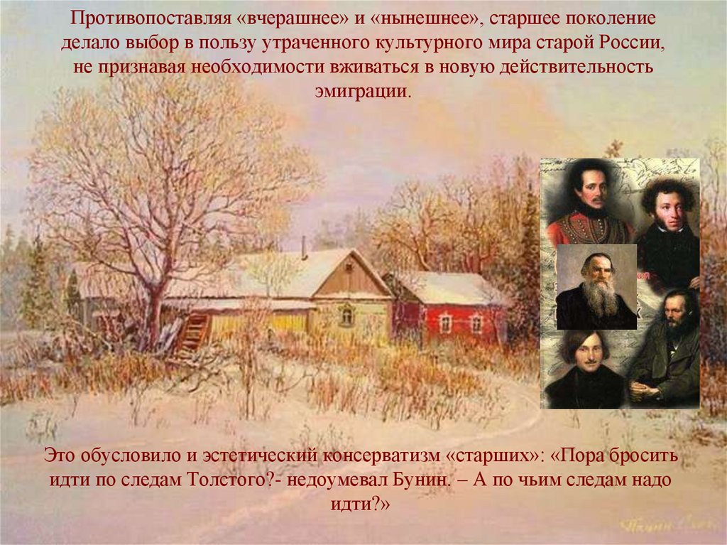 не признавая необходимости вживаться в новую действительностьэмиграции.