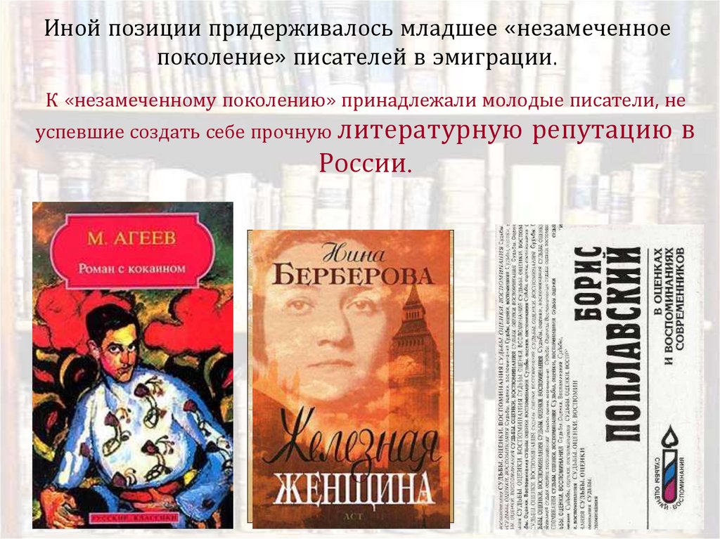В изгнании прозаиками старшего поколения создаются великие книги: