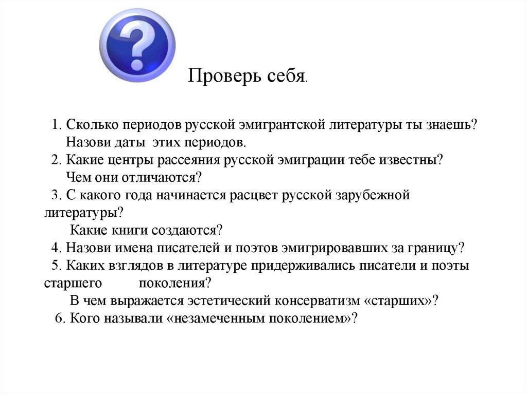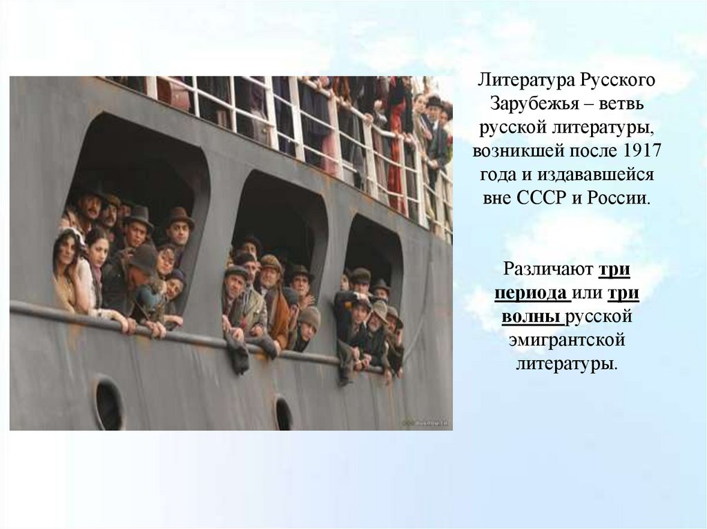 3. Литература Русского Зарубежья – ветвь русской литературы, возникшей после 1917 года и издававшейся вне СССР и России. Различают