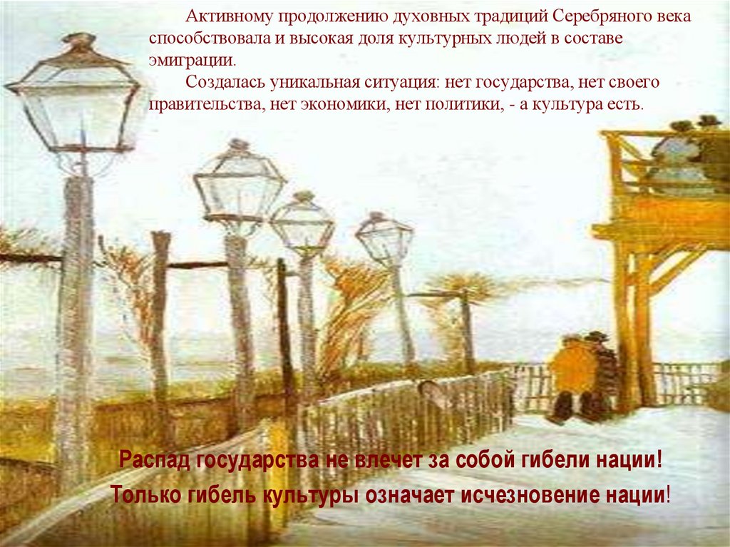 38. Активному продолжению духовных традиций Серебряного века способствовала и высокая доля культурных людей в составе эмиграции.