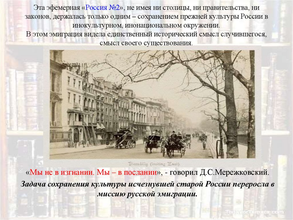 • Дмитрий Мережковский говорил: «Мы не в изгнании. Мы….»