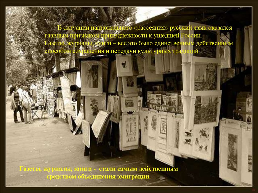 41. В ситуации национального «рассеяния» русский язык оказался главным признаком принадлежности к ушедшей России. Газеты, журналы,