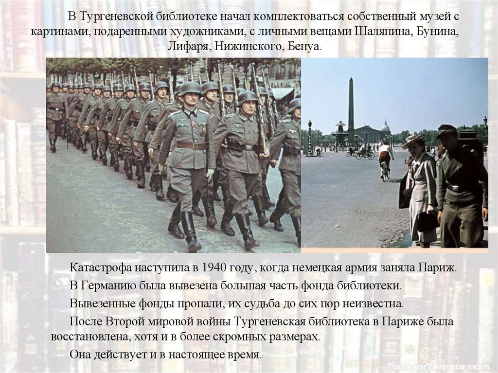 Катастрофа наступила в 1940 году, когда немецкая армия заняла Париж.