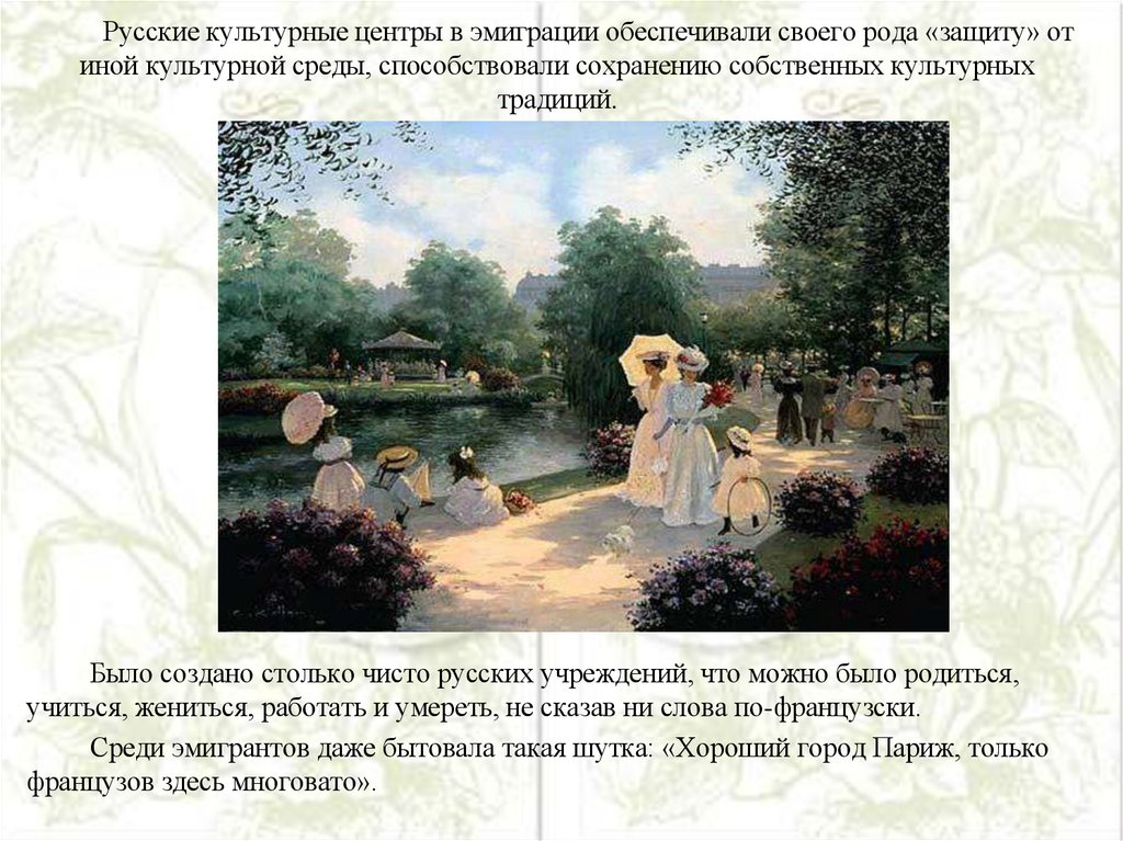 Среди эмигрантов даже бытовала такая шутка: «Хороший город Париж, только