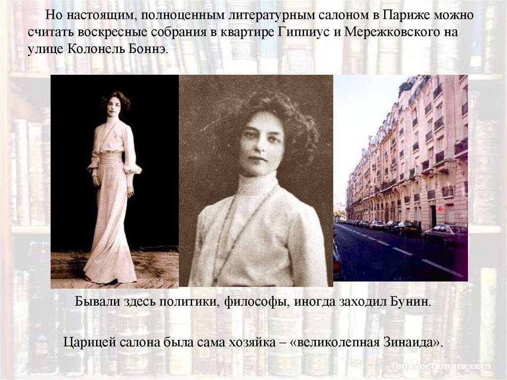 48. Но настоящим, полноценным литературным салоном в Париже можно считать воскресные собрания в квартире Гиппиус и Мережковского на