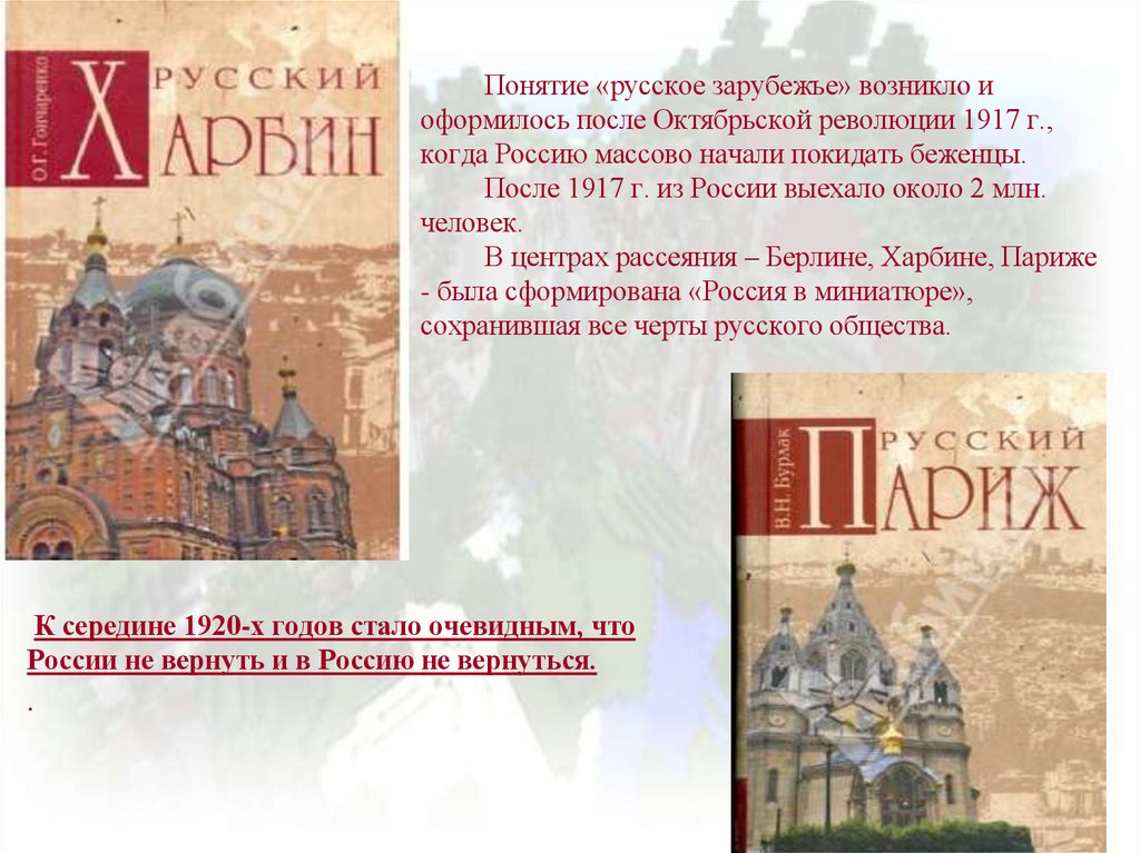 6. Понятие «русское зарубежье» возникло и оформилось после Октябрьской революции 1917 г., когда Россию массово начали покидать