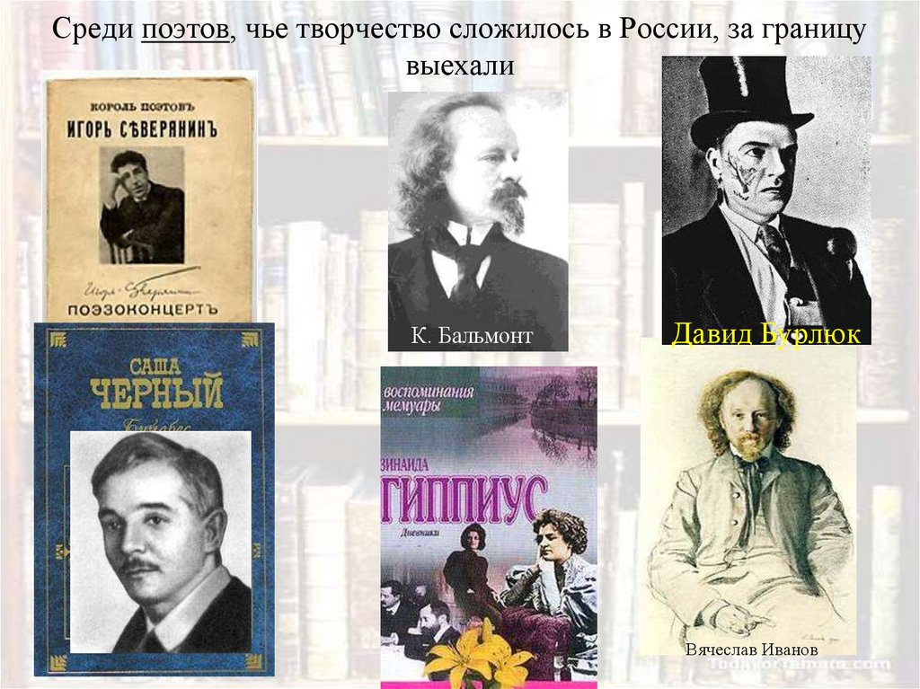 успевших войти в литературу исоставить себе имя ещё в дореволюционной России.