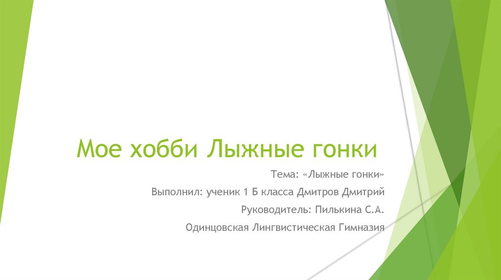 Мое хобби Лыжные гонкиТема: «Лыжные гонки»