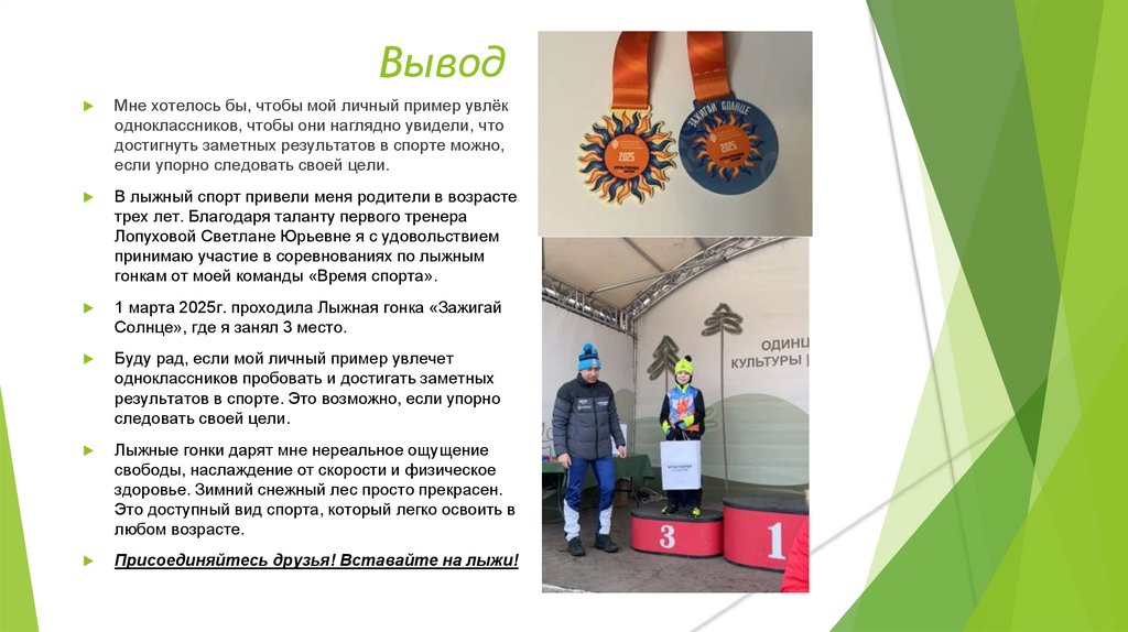 ВыводМне хотелось бы, чтобы мой личный пример увлёк