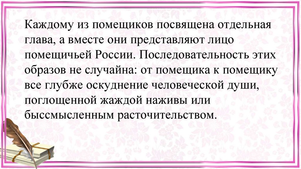 Каждому из помещиков посвящена отдельнаяглава, а вместе они представляют лицо