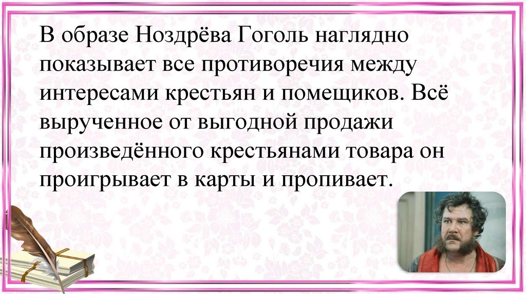 В образе Ноздрёва Гоголь нагляднопоказывает все противоречия между