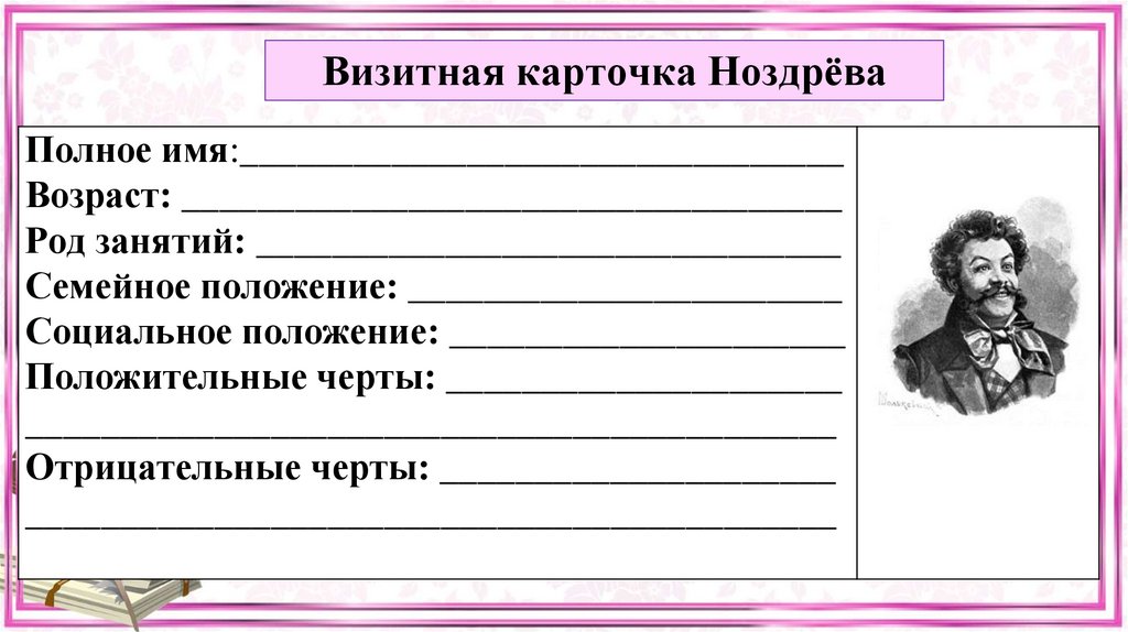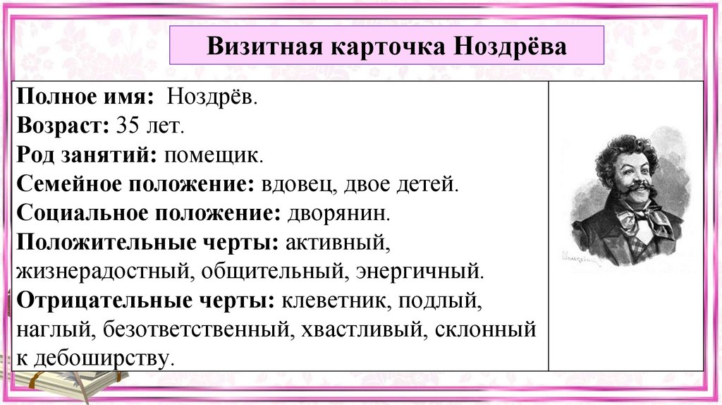 Визитная карточка НоздрёваПолное имя: Ноздрёв.
