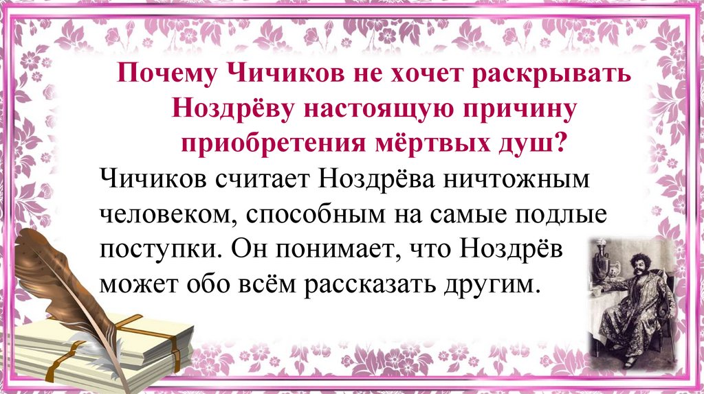 Почему Чичиков не хочет раскрыватьНоздрёву настоящую причину