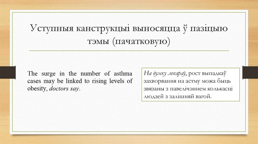 22. Уступныя канструкцыі выносяцца ў пазіцыю тэмы (пачатковую)