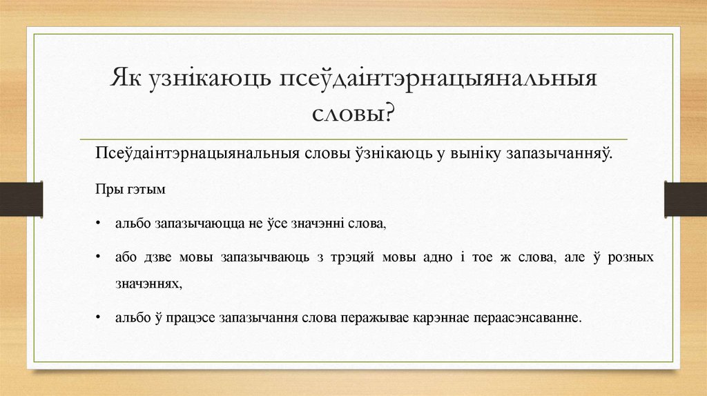 6. Як узнікаюць псеўдаінтэрнацыянальныя словы?