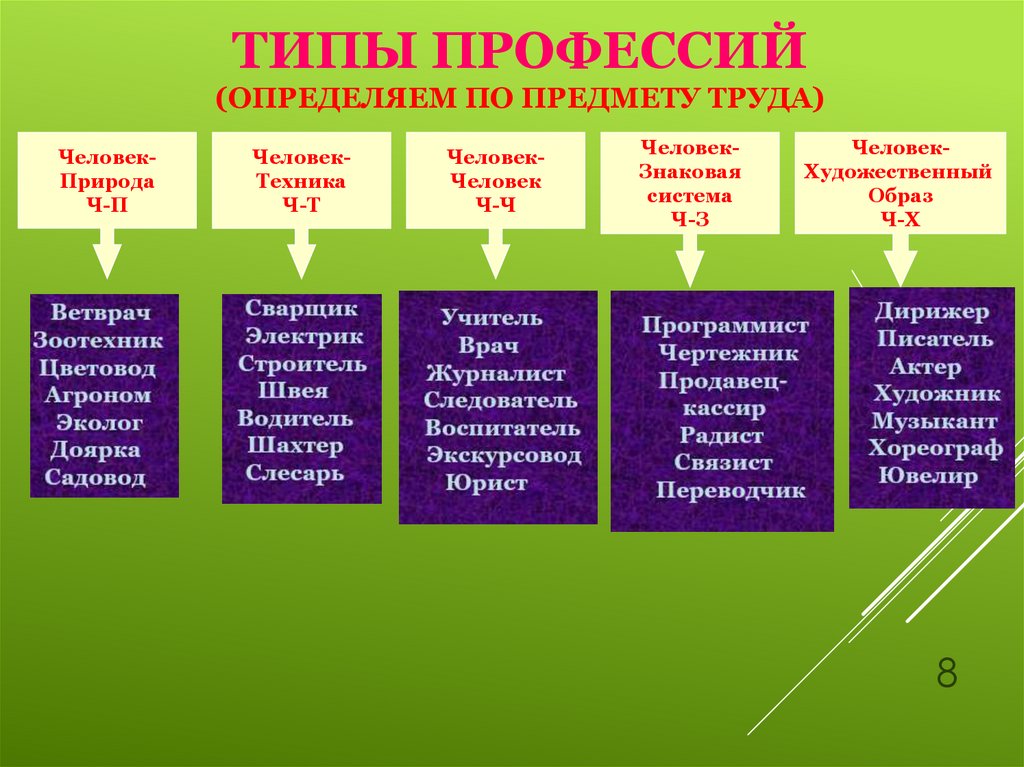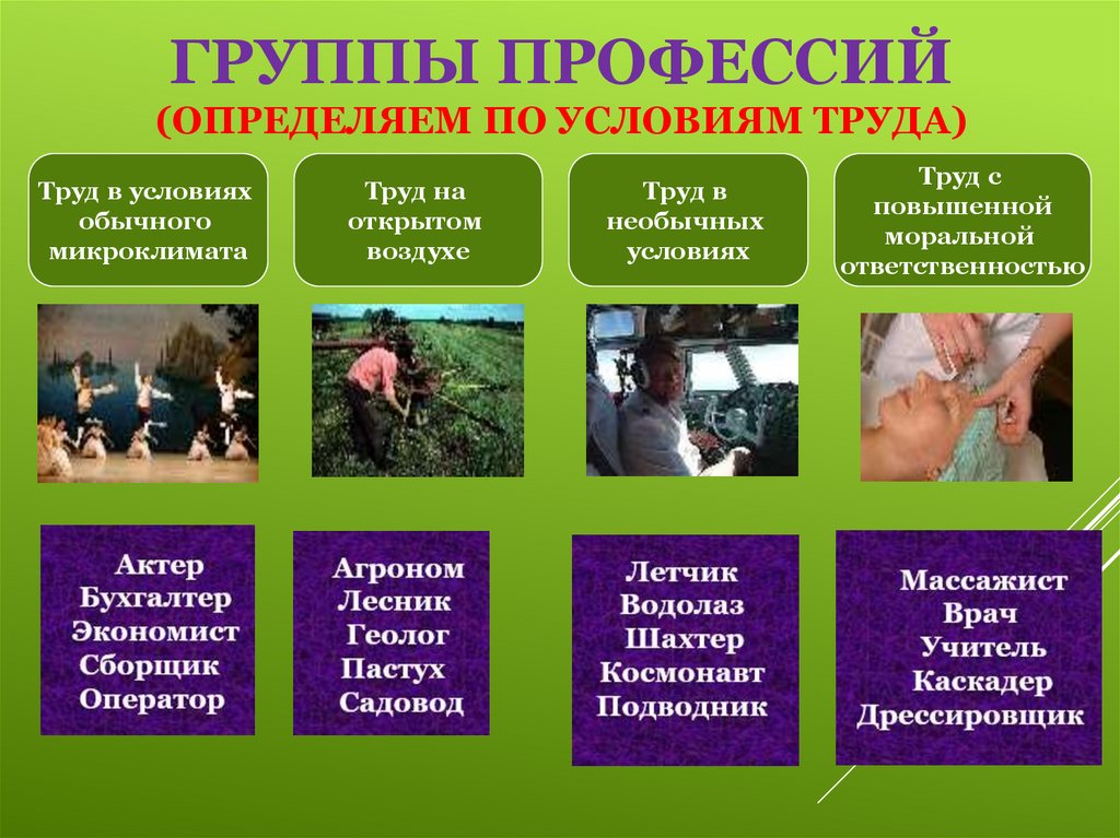 11. Группы профессий (определяем по условиям труда)