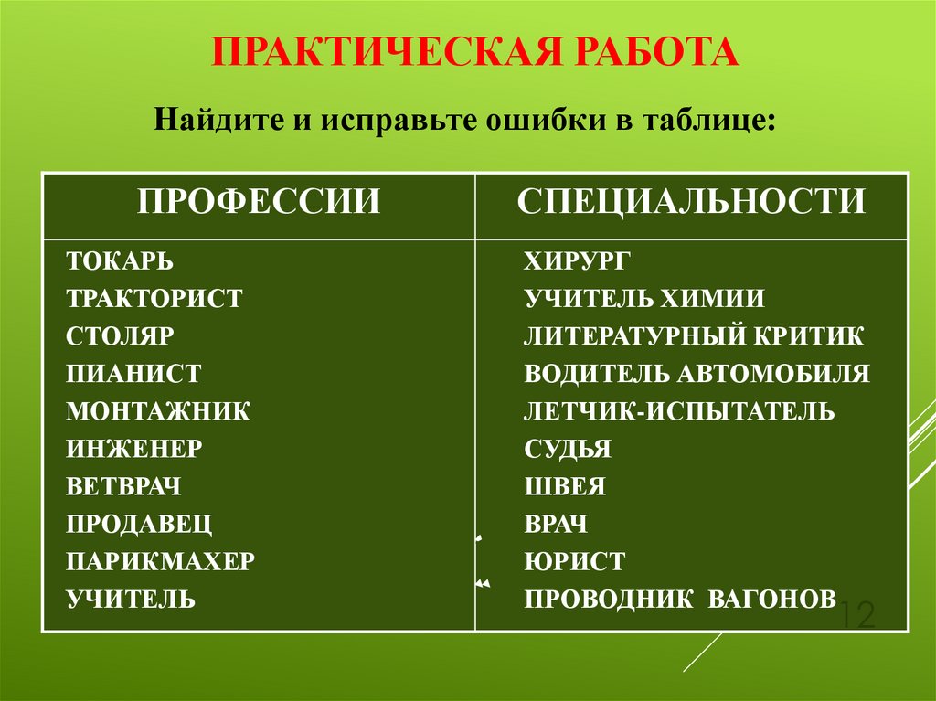 12. Практическая работа