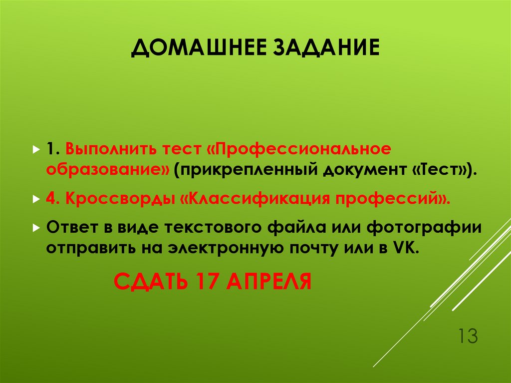 13. Домашнее задание