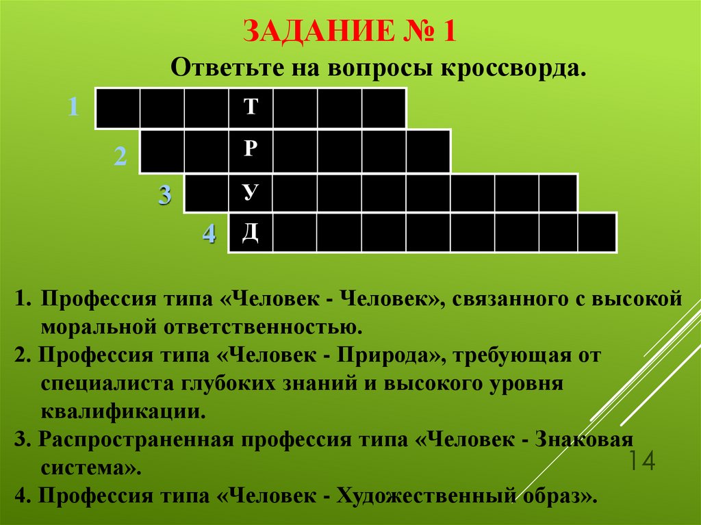 4. Кроссворды «Классификация профессий».