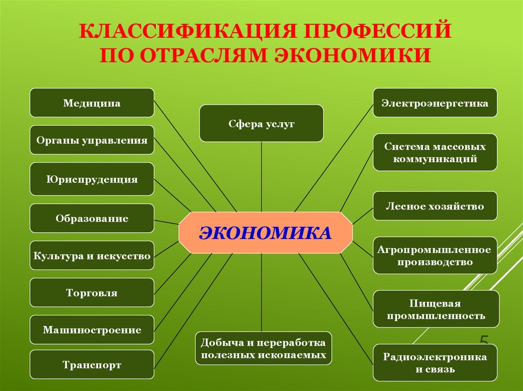 5. Классификация профессий по отраслям экономики