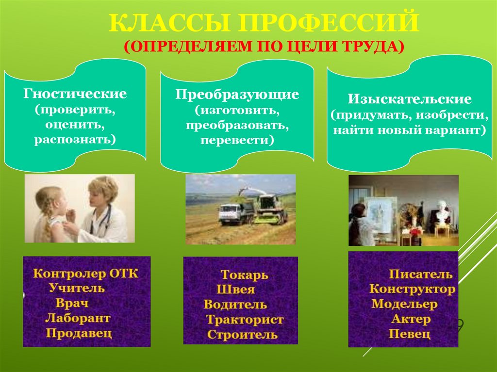 ЗАДАНИЕ № 2Назовите цели труда различных классов профессий.