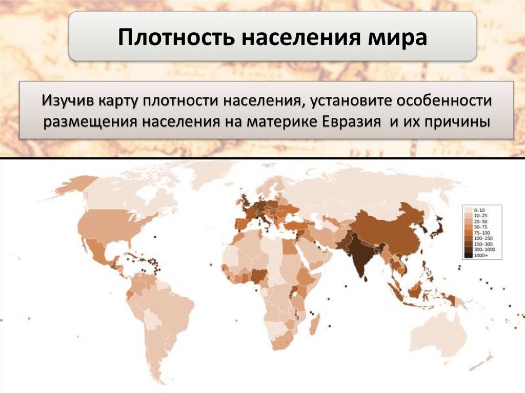 Плотность населения мираИзучив карту плотности населения, установите особенности