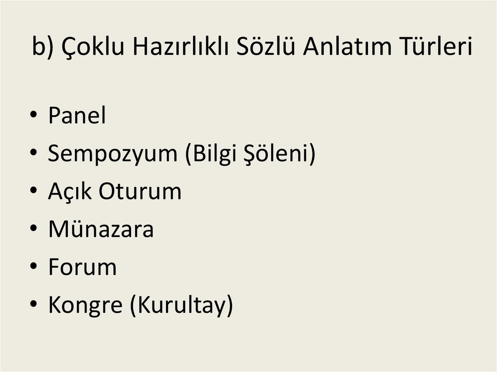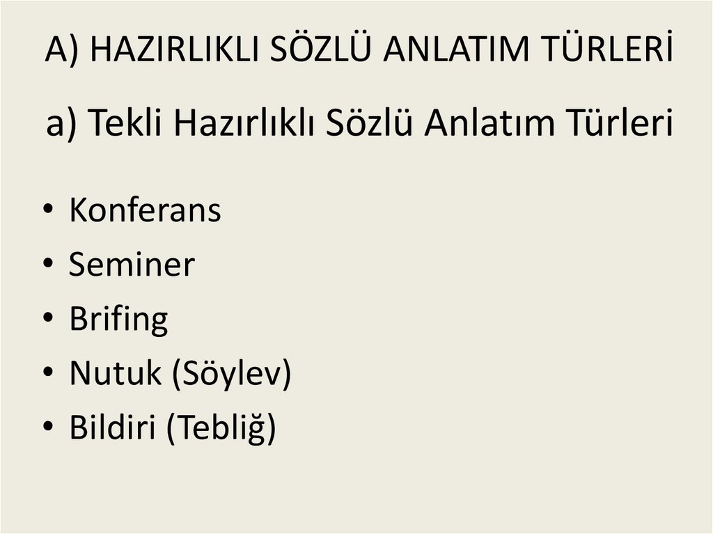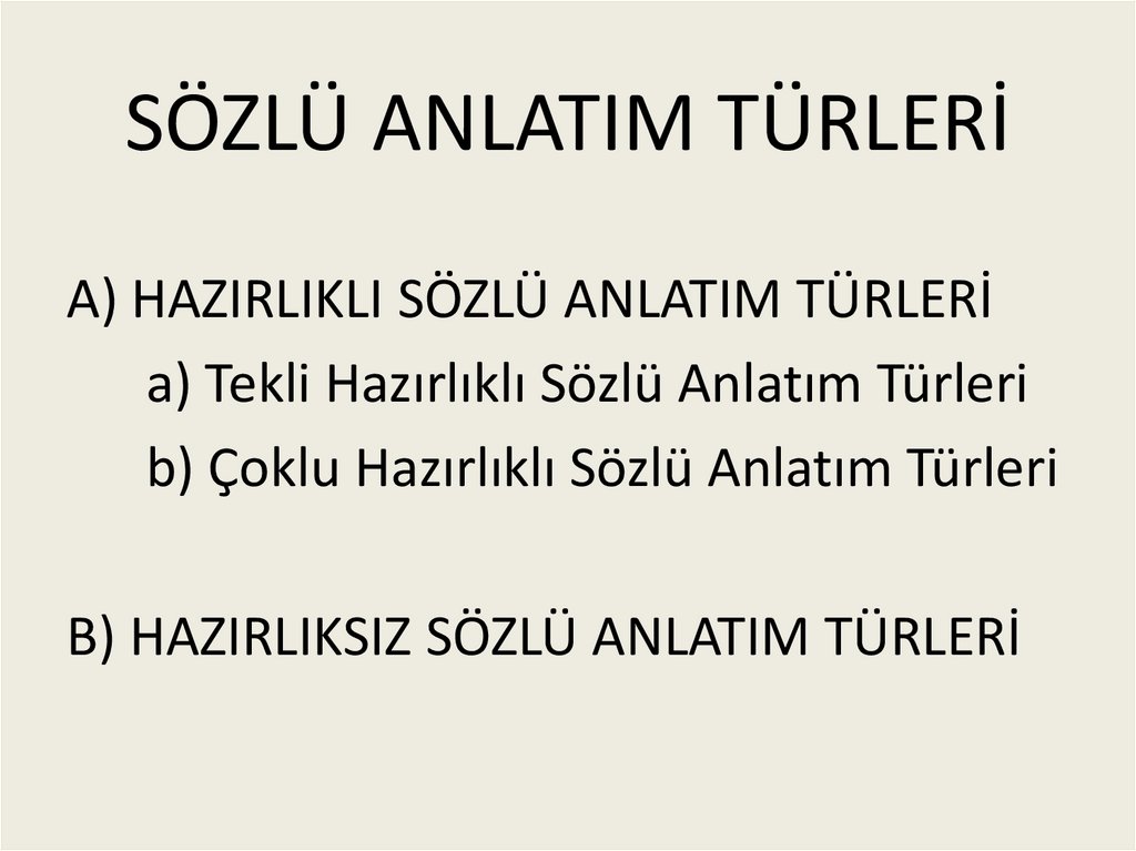 A) HAZIRLIKLI SÖZLÜ ANLATIM TÜRLERİa) Tekli Hazırlıklı Sözlü Anlatım Türleri