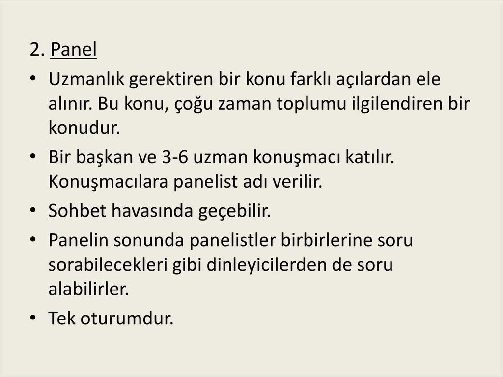 2. Panel• Uzmanlık gerektiren bir konu farklı açılardan ele