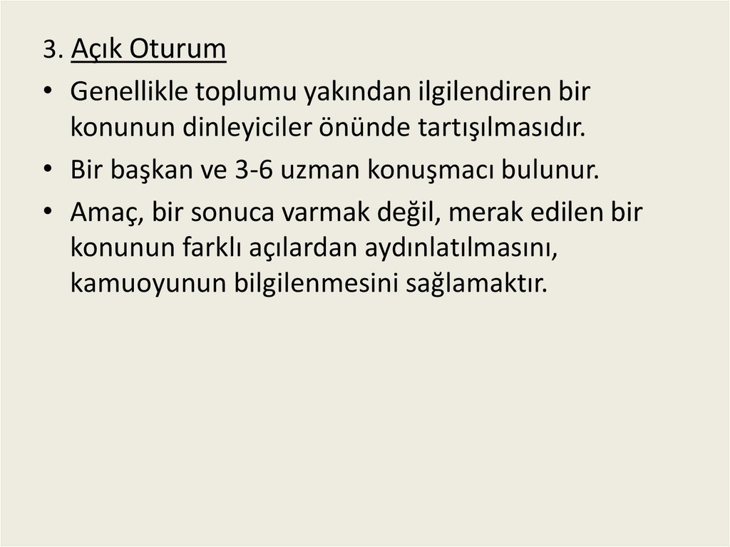 3. Açık Oturum• Genellikle toplumu yakından ilgilendiren bir