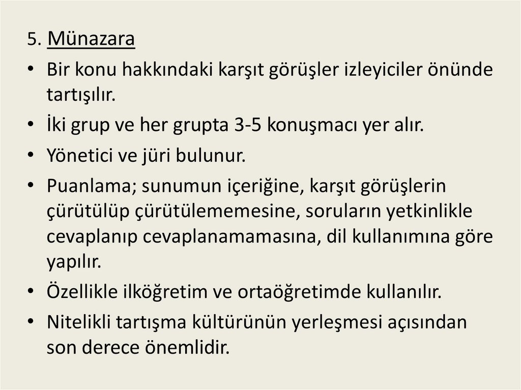 5. Münazara• Bir konu hakkındaki karşıt görüşler izleyiciler önünde