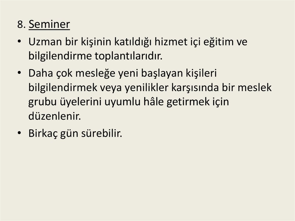 8. Seminer• Uzman bir kişinin katıldığı hizmet içi eğitim ve