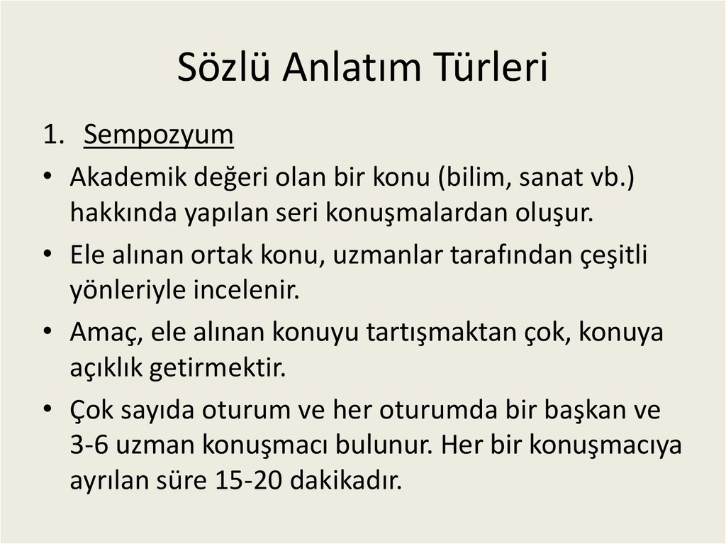 2. A) HAZIRLIKLI SÖZLÜ ANLATIM TÜRLERİ a) Tekli Hazırlıklı Sözlü Anlatım Türleri