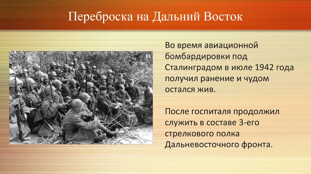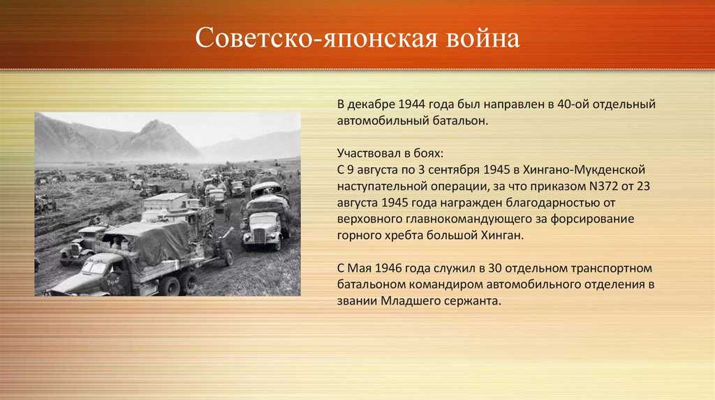 Советско-японская войнаВ декабре 1944 года был направлен в 40-ой отдельный