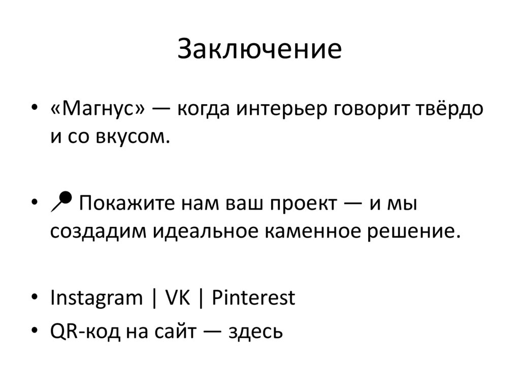 Заключение• «Магнус» — когда интерьер говорит твёрдо