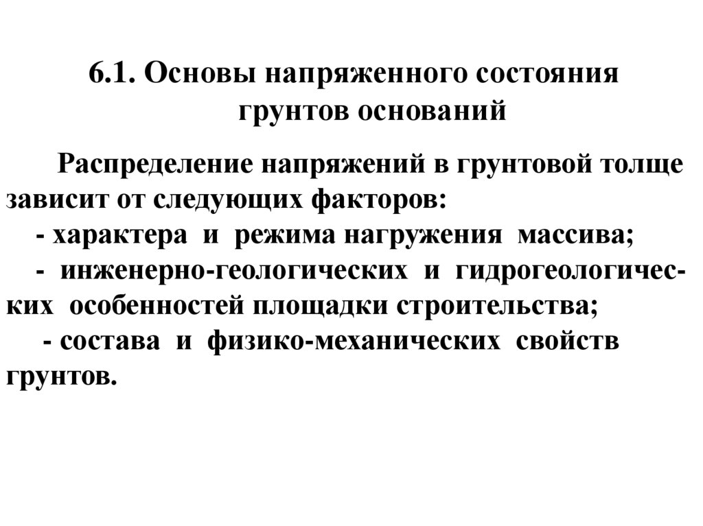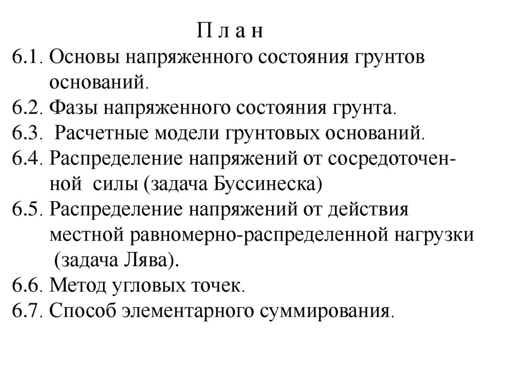 2. П л а н 6.1. Основы напряженного состояния грунтов оснований. 6.2. Фазы напряженного состояния грунта. 6.3. Расчетные модели