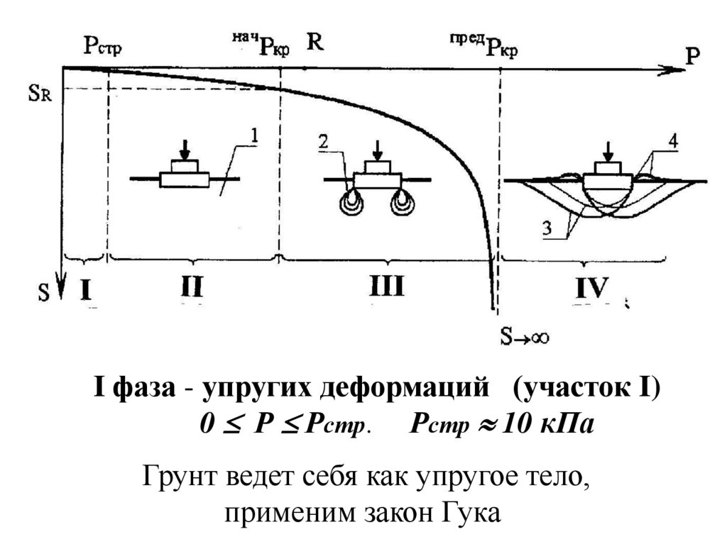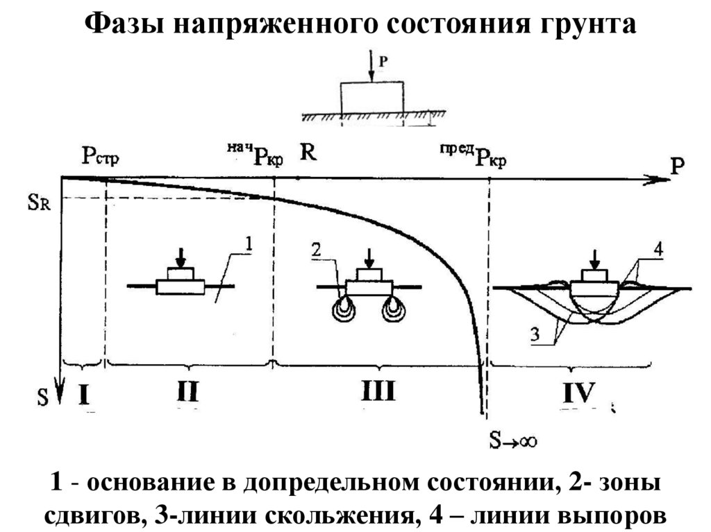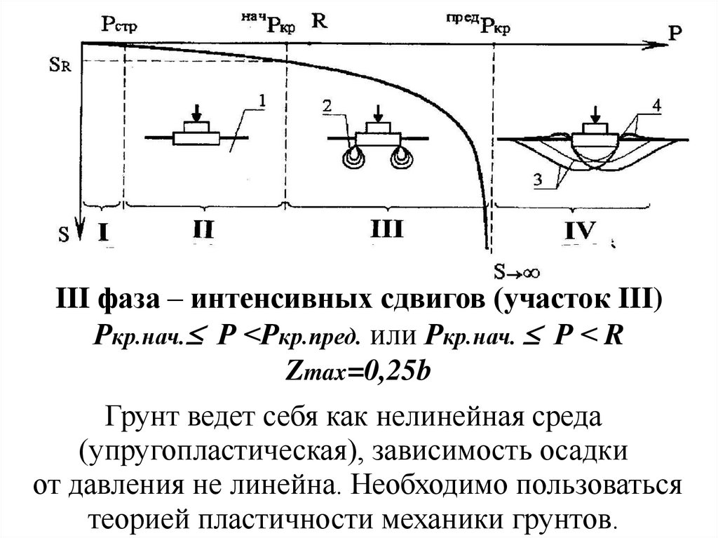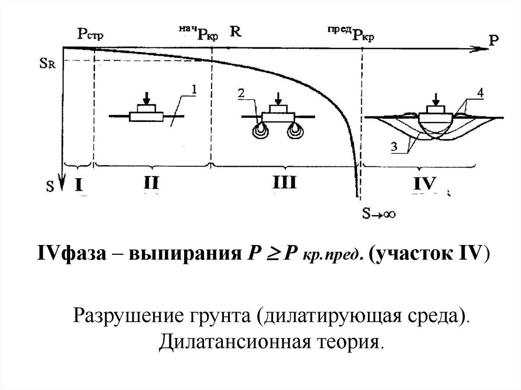 IVфаза – выпирания Р Р кр.пред. (участок IV)Разрушение грунта (дилатирующая среда).