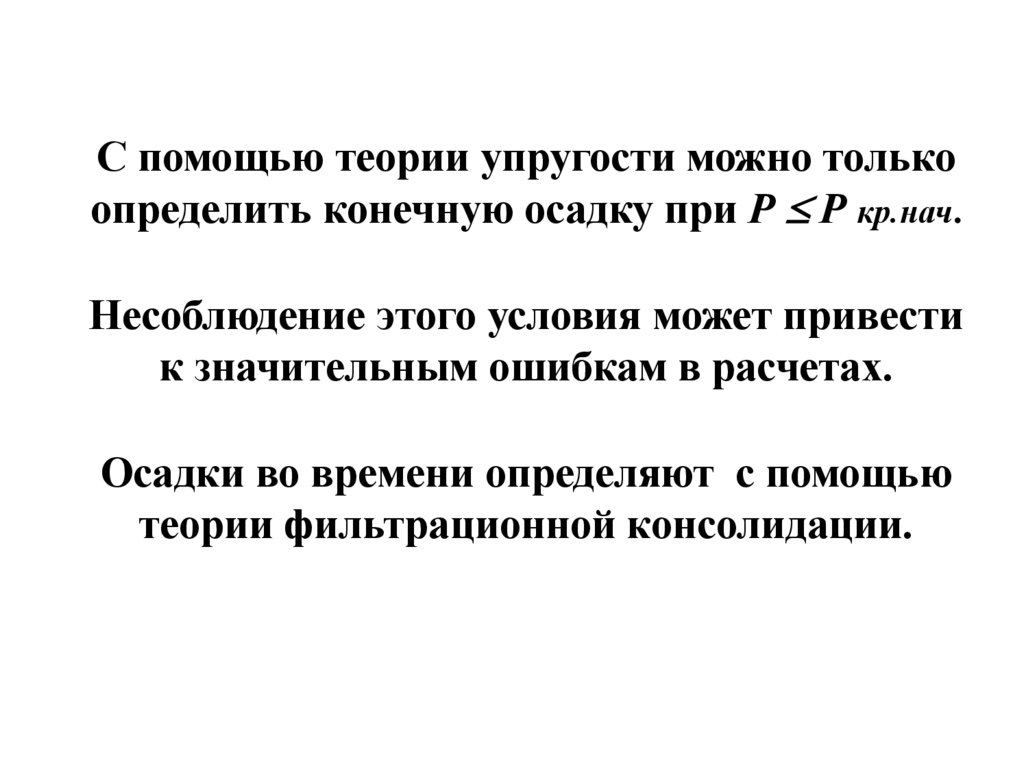 С помощью теории упругости можно толькоопределить конечную осадку при Р Р кр.нач.