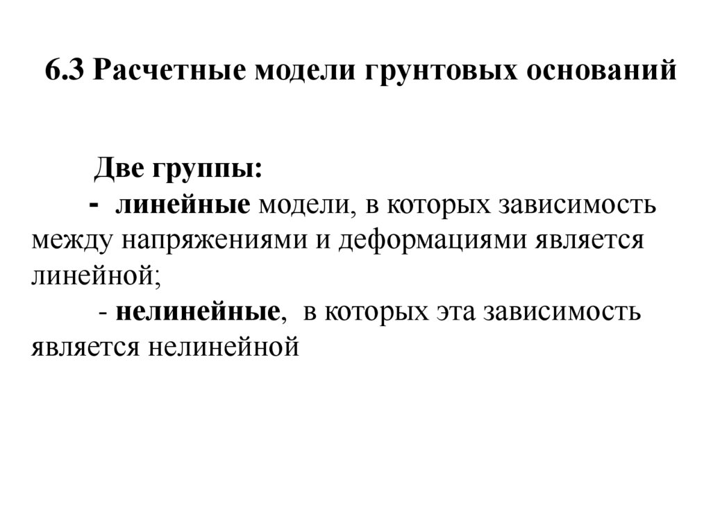 6.3 Расчетные модели грунтовых основанийДве группы: