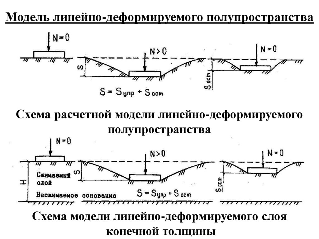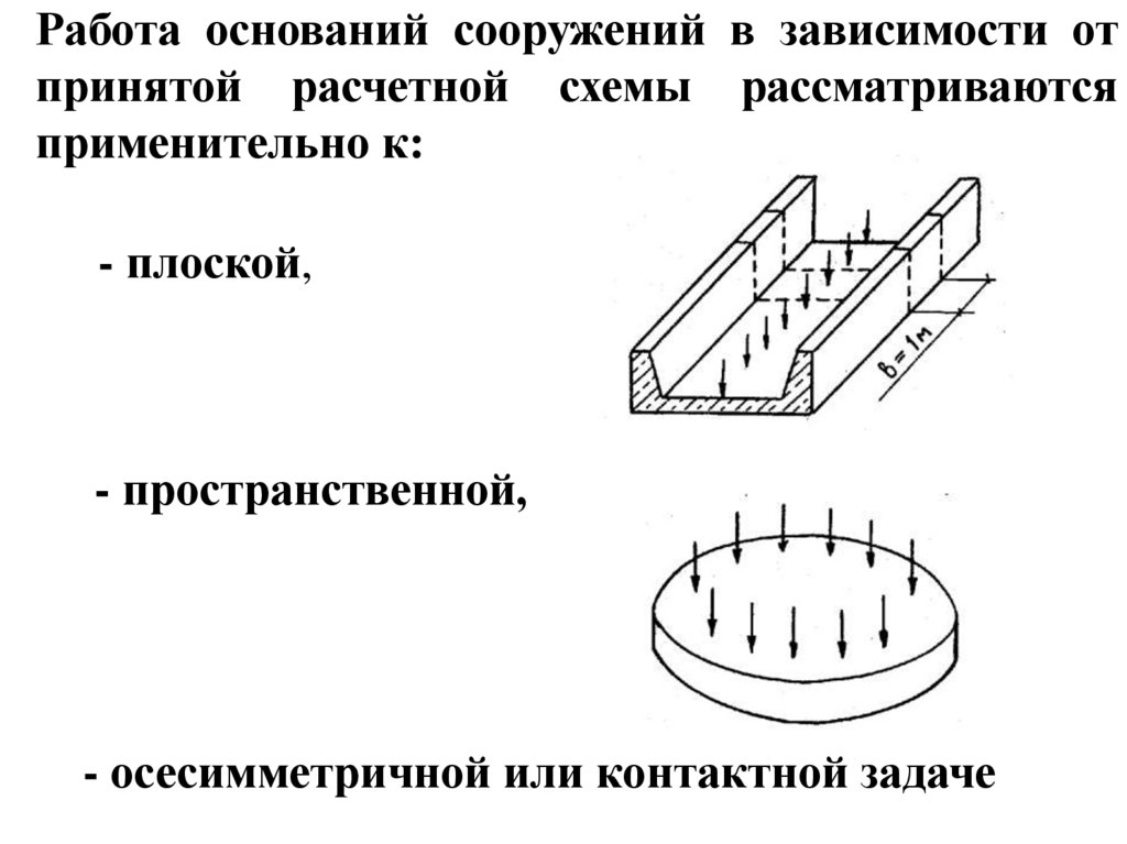 Работа оснований сооружений в зависимости отпринятой расчетной схемы рассматриваются