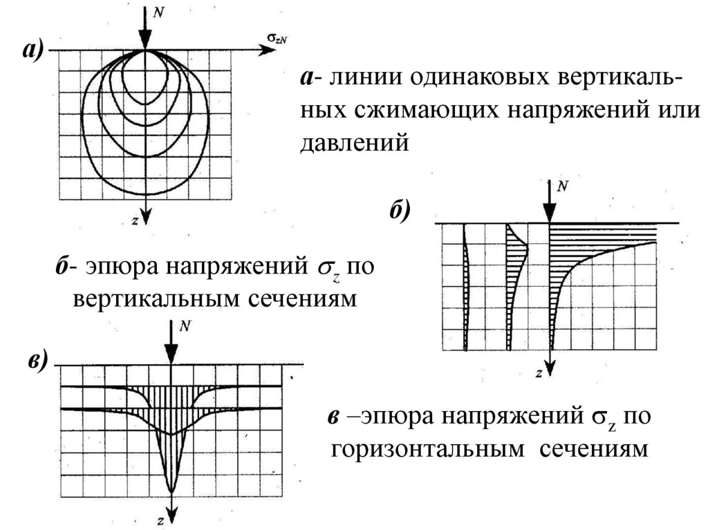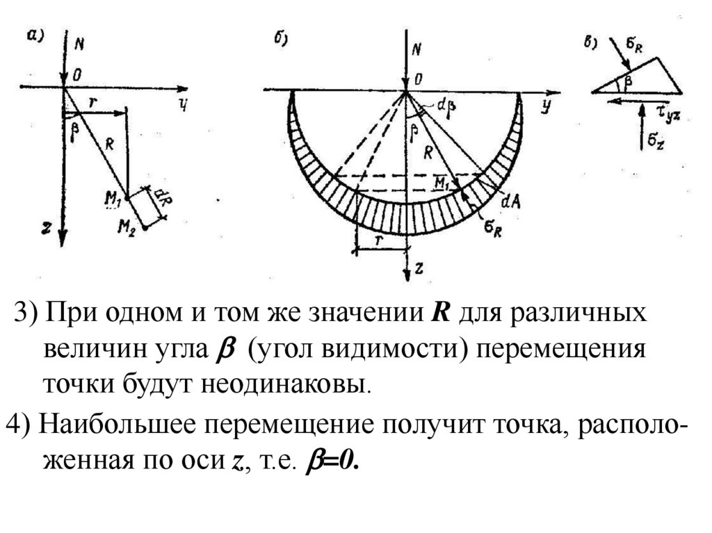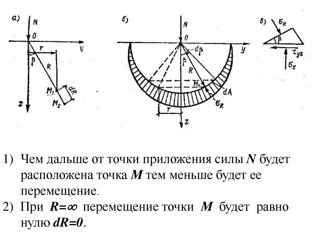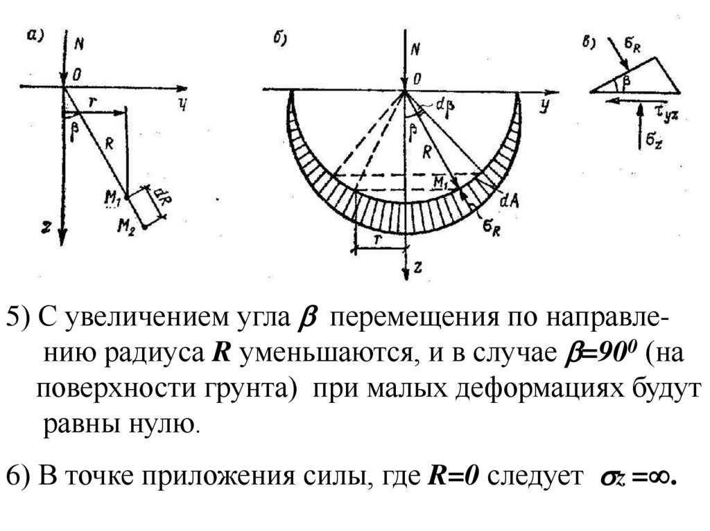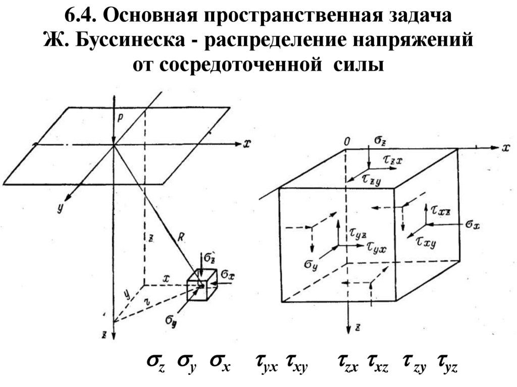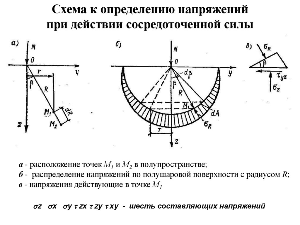6.4. Распределение напряжений от сосредоточенной силы (задача Буссинеска)
