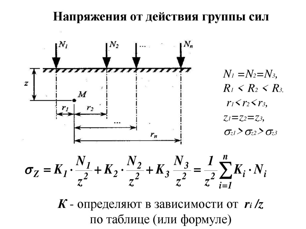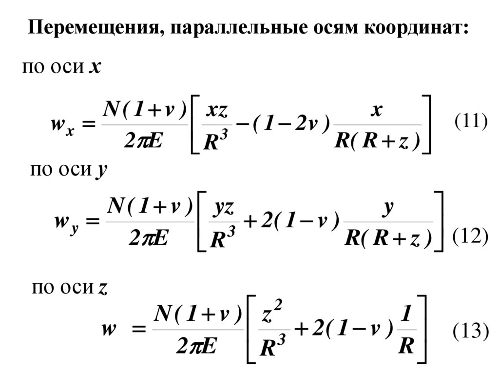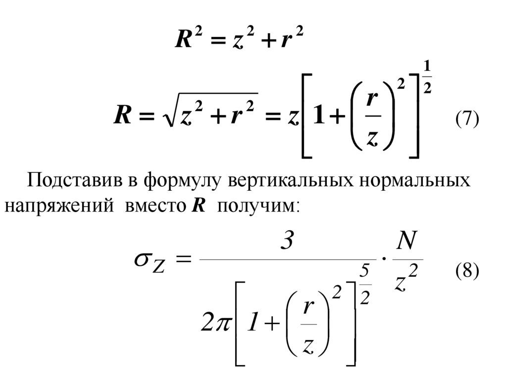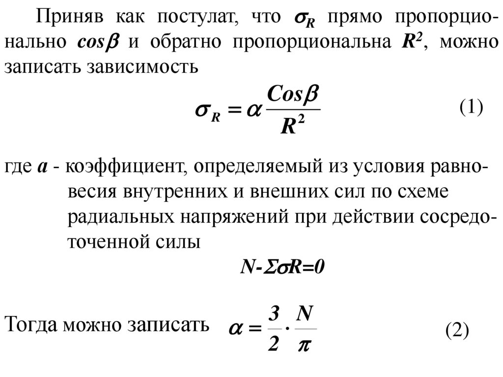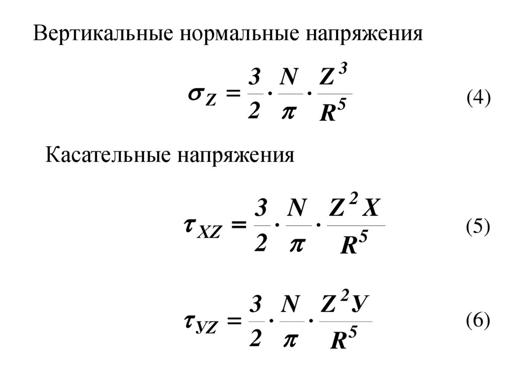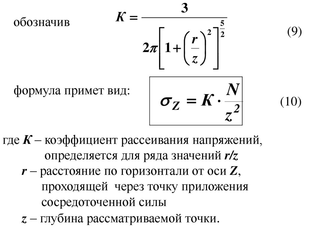 6.4. Распределение напряжений от сосредоточенной силы (задача Буссинеска)