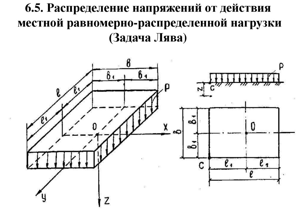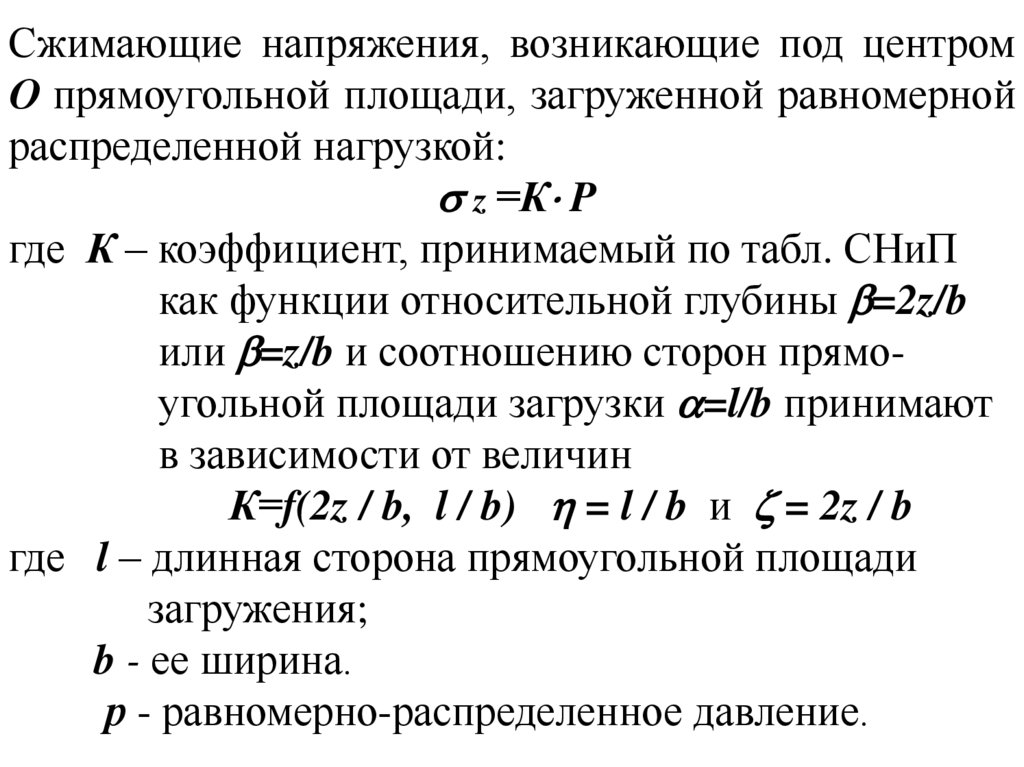 Сжимающие напряжения, возникающие под центромО прямоугольной площади, загруженной равномерной