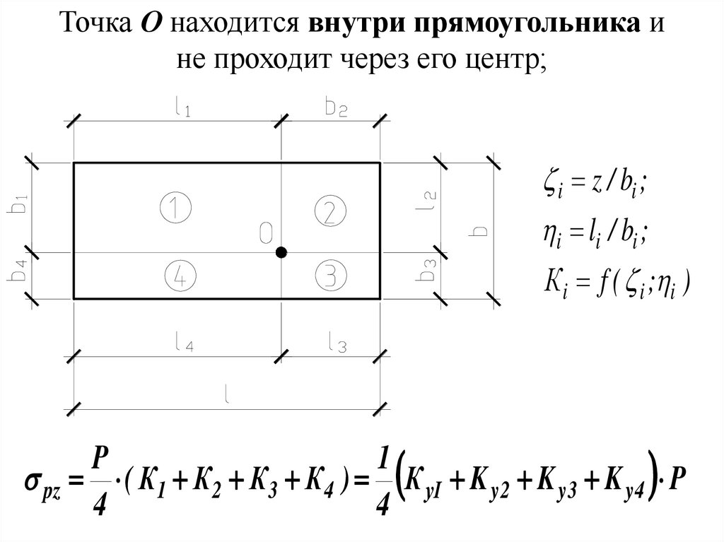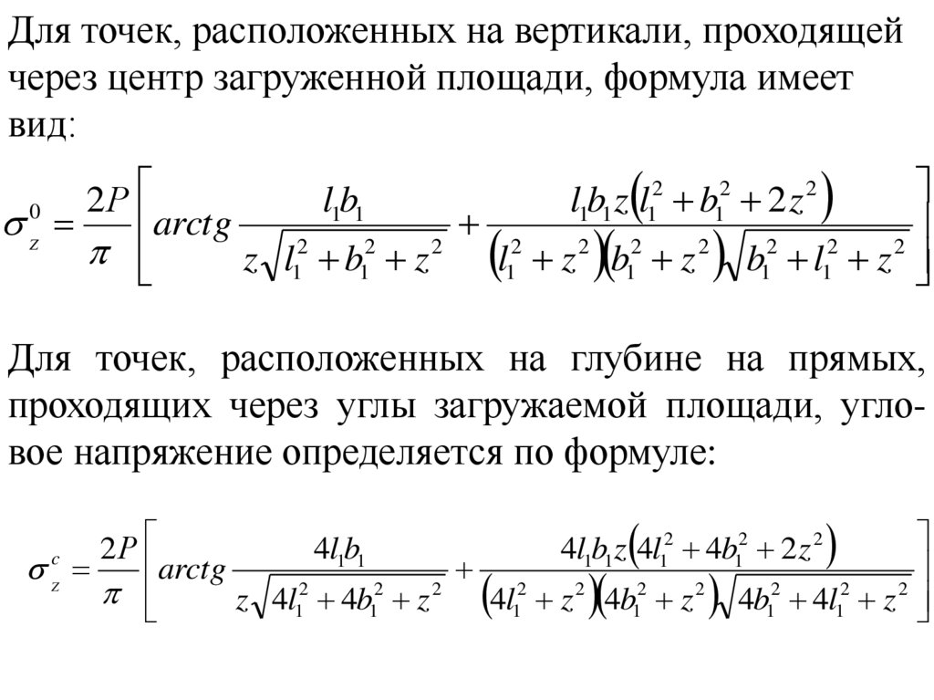 Для точек, расположенных на вертикали, проходящейчерез центр загруженной площади, формула имеет