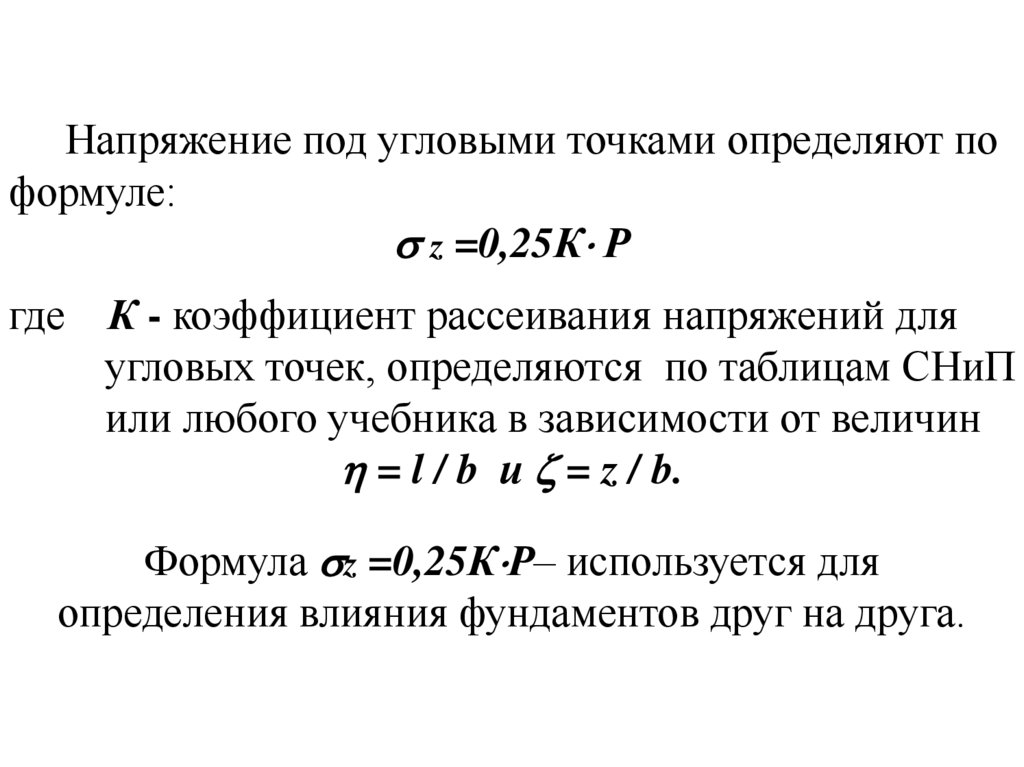 проходящих через углы загружаемой площади, угловое напряжение определяется по формуле:
