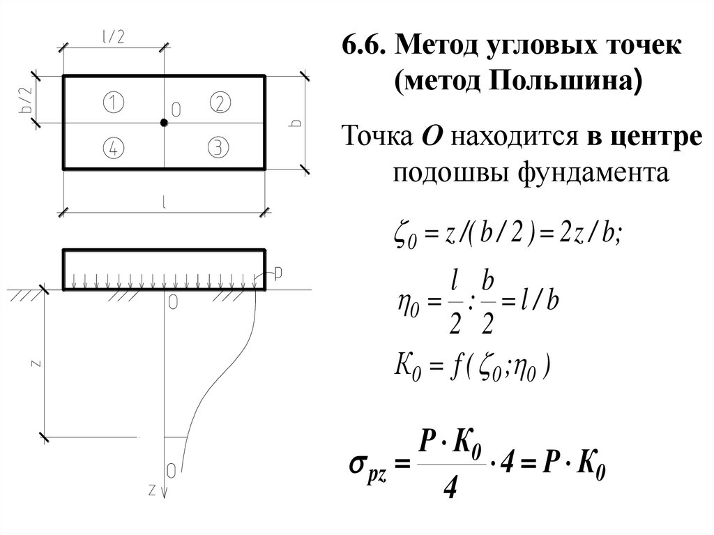 или =z/b и соотношению сторон прямоугольной площади загрузки =l/b принимают