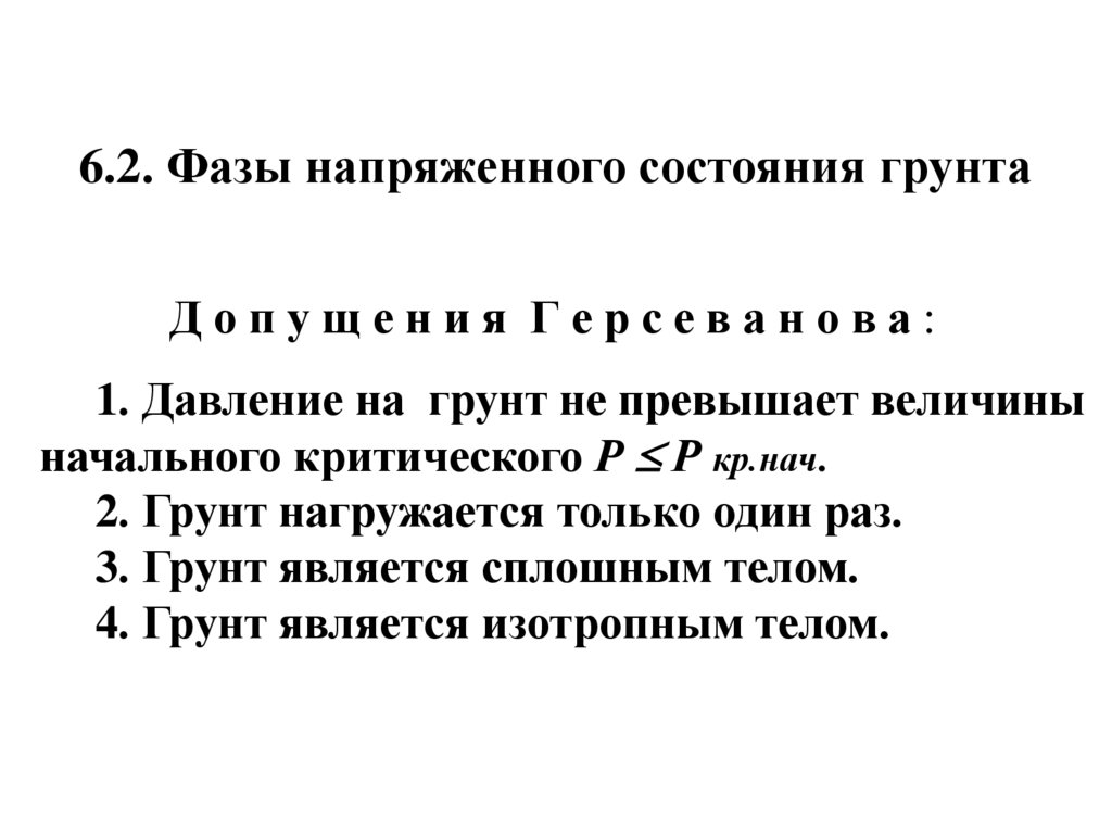 6.2. Фазы напряженного состояния грунтаДопущения Герсеванова: