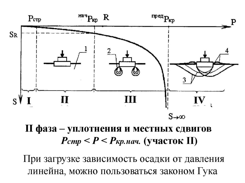 II фаза – уплотнения и местных сдвиговРстр < Р < Ркр.нач. (участок II)